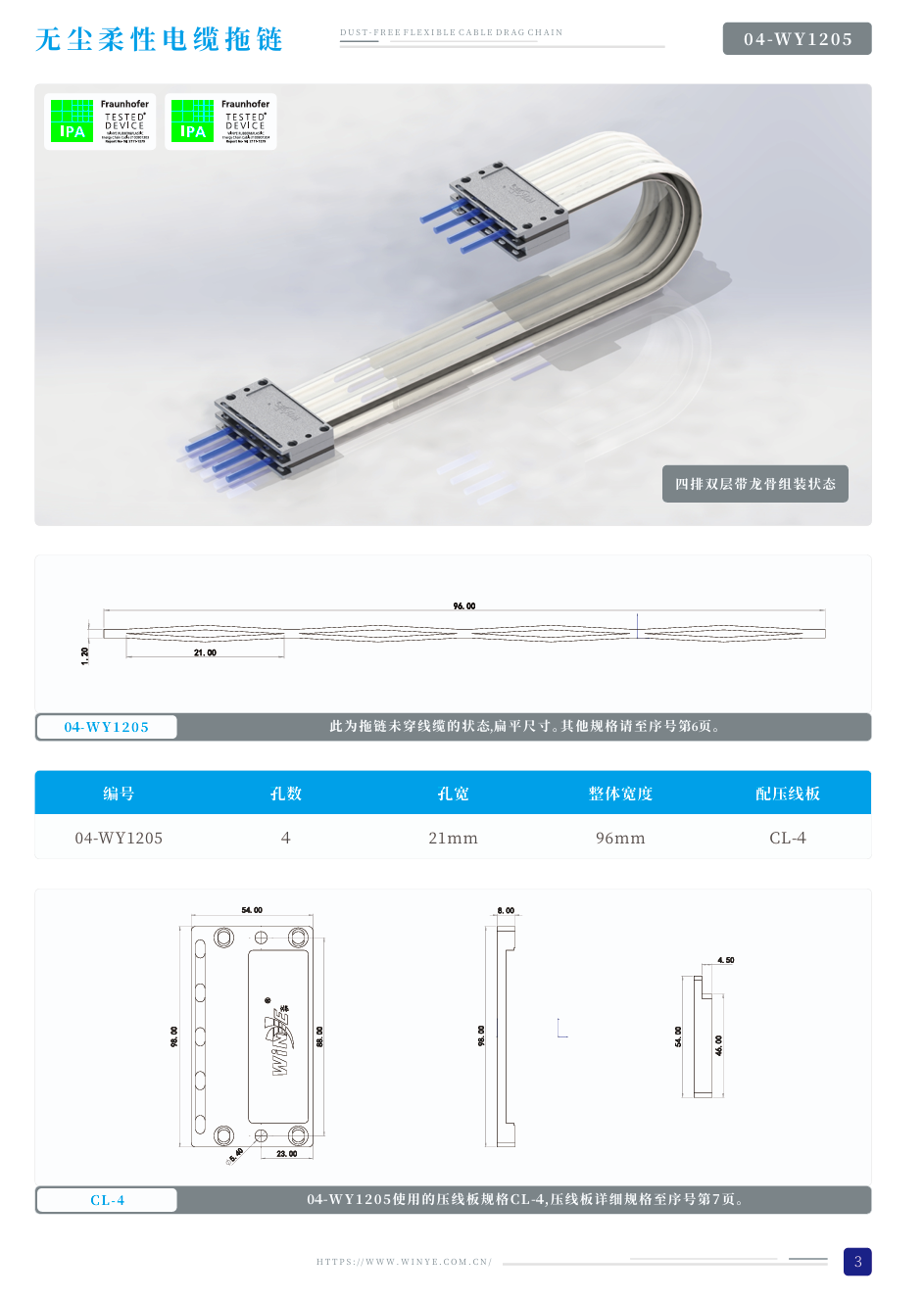 这类规格的价值,不只是“比 03 规格再宽一点”,而是已经进入四通道并行组织 + 双层结构稳定 + 龙骨支撑参与运行的应用层级。对于需要更高走线密度、更清晰层级管理和更稳定弯曲支撑的项目,04-WY1205 更适合被放进整套方案设计中讨论,而不是被当成普通四孔护套件孤立理解。